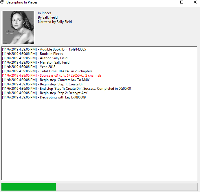Then it's decrypted so you can use it on any device you choose. The very first time you decrypt a book, this step will take a while. Every other book will go much faster. The first time, Libation has to figure out the special decryption key which allows your personal books to be unlocked.
